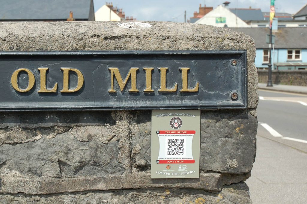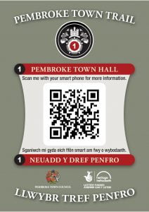 Find out more about historic Pembroke by following the Town Trail which begins at Pembroke Town Hall and is marked out in 30 bronze plaques set into the pavements along the route.  The attractive Town Trail booklet with fold out map can be obtained from the Town Hall  and costs just £1.50. (All proceeds in support of Pembroke Museum). You can also follow the Trail digitally by scanning the plaques bearing QR codes sited around the town. As an added plus, the digital Trail is bi-lingual in Welsh and English.  To find our more, go to  https://www.pembroketowntrail.wales